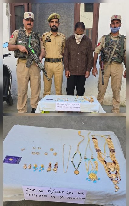 Srinagar Police Crack Theft Case, Arrest Suspect with Gold Valued at Rs 12 Lakh September 29, 2025 No Comments