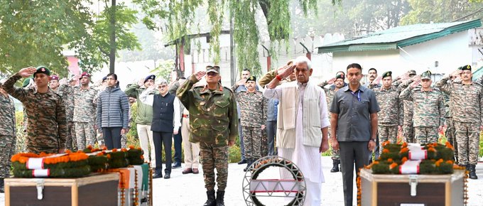 LG Manoj Sinha pays tribute to two soldiers who lost their lives in the Kokernag operation October 11, 2025 No Comments