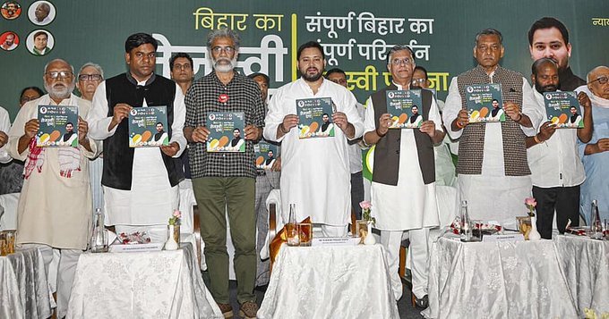 INDIA Bloc Unveils Bihar Poll Manifesto; Vows Government Jobs, Free Electricity, and Restoration of Old Pension Scheme October 28, 2025 No Comments
