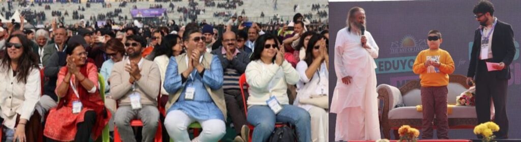 Addressing the massive youth gathering, Gurudev emphasized the urgent need to eliminate drug abuse and reimagine education as a journey of love, happiness, and creativity. He urged students to stay rooted in their cultural heritage while embracing innovation, compassion, and purposeful living.