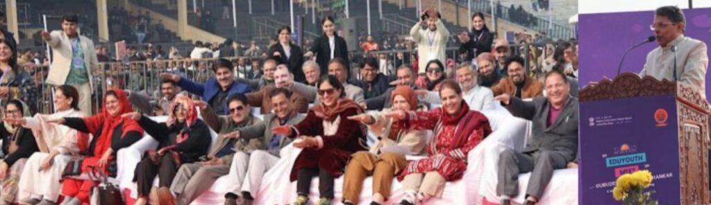 Highlighting the global mental health challenge, Gurudev noted that nearly one-fourth of the world’s population experiences psychological distress. He advocated for mindfulness, meditation, and balanced living as practical remedies. Citing Kashmir’s spiritual traditions, including the Spanda Karika and ancient breathing techniques, he called for their revival within modern education.