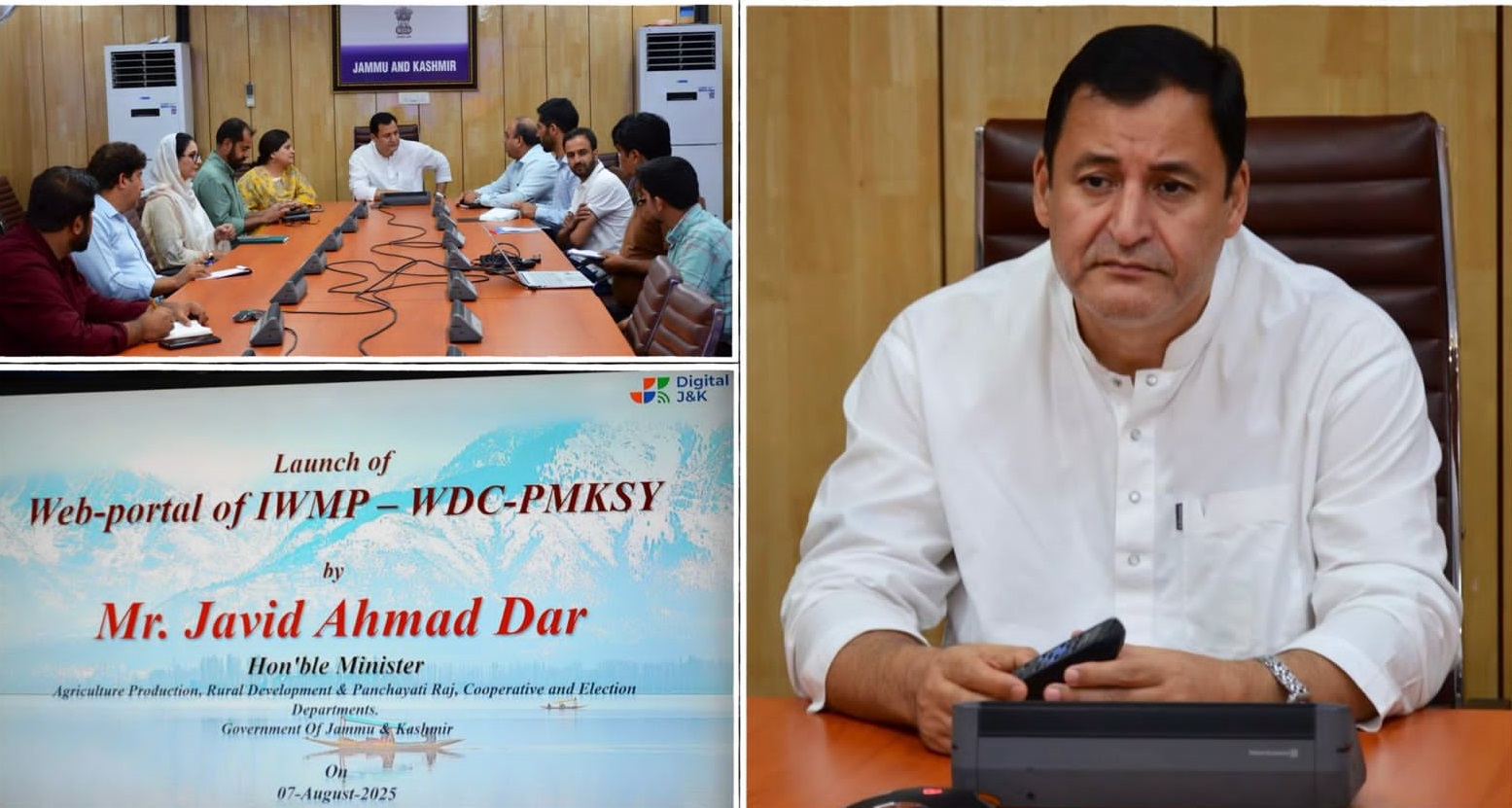 SRINAGAR: Javid Ahmed Dar, Minister for Agriculture Production, Rural Development & Panchayati Raj, Cooperatives, and Election Departments, officially launched the website of the Integrated Watershed Management Programme (IWMP) on Thursday at the Civil Secretariat in Srinagar.