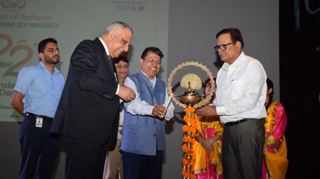 The event was attended by Shri Baldev Raj, MLA; Shri Ashok Bhan and Ms. Gunjan Rana, Members of Shri Mata Vaishno Devi Shrine Board; Shri Shantmanu, Additional Chief Secretary, Higher Education; Prof. Pragati Kumar, Vice-Chancellor of the university; Shri Sachin Kumar Vaishya, CEO of Shri Mata Vaishno Devi Shrine Board; along with senior officials, faculty, staff, and students.