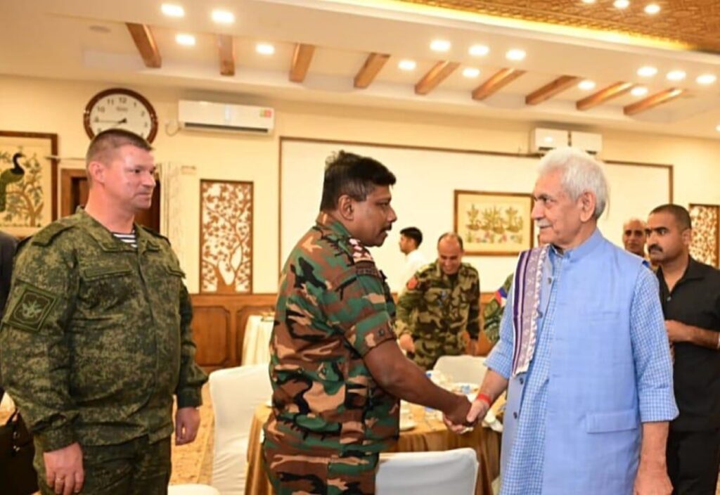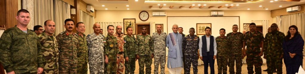 Srinagar: Lieutenant Governor Manoj Sinha interacted with a delegation of senior officers from the Indian Armed Forces, Civil Services, and friendly foreign nations currently attending the course at the National Defence College.