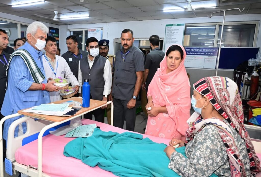 The Lt Governor was accompanied by Secretary Health and Medical Education Dr. Syed Abid Rasheed Shah, SSP Srinagar Dr. GV Sundeep Chakravarthy, Deputy Commissioner Srinagar Akshay Labroo, and other senior officials.