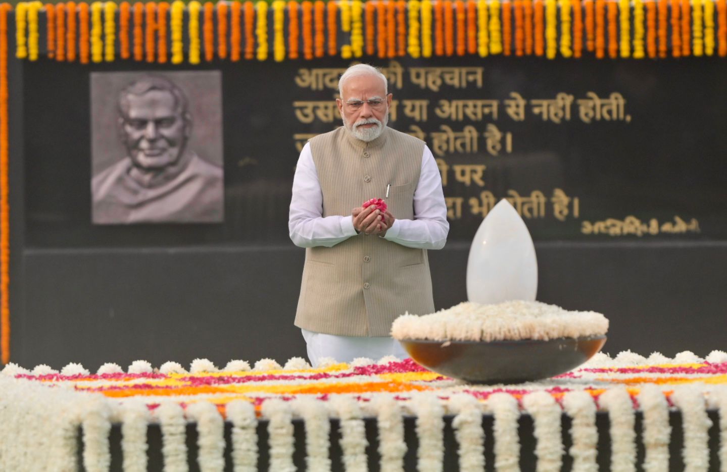 The Prime Minister, along with several dignitaries including President Droupadi Murmu, Union ministers, and Lok Sabha Speaker Om Birla, visited Vajpayee’s memorial, ‘Sadaiv Atal’, to pay their respects.