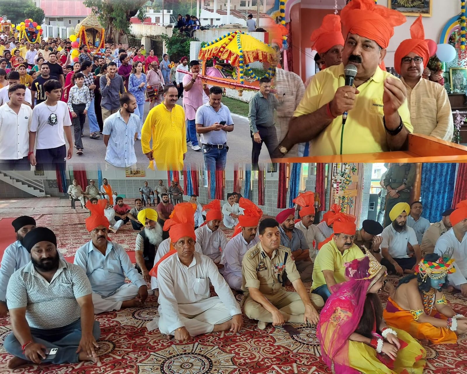 A grand Shobha Yatra commenced from Shree Geeta Bhavan, featuring tableaux and traditional performances that reflected the region’s cultural heritage and devotion to Lord Krishna. The Deputy Commissioner, SSP, and other officials participated in the procession, showing solidarity with the community.