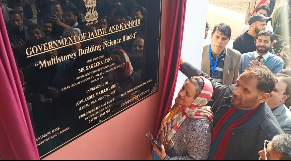 Earlier, Minister Sakeena Itoo inaugurated the new Science Block, Badminton Hall, and canteen. She said the Science Block—equipped with modern laboratories and smart classrooms—will enhance academic and research opportunities for students. The new sports and welfare facilities, she added, reflect the government’s commitment to promoting holistic development.
