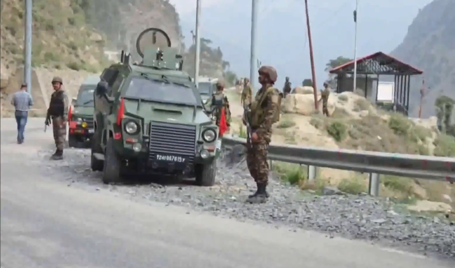The terrorists are believed to be holed up inside a cave located on a cliff in the Bhagna forest of Dool area, approximately 25 kilometers from Kishtwar town.